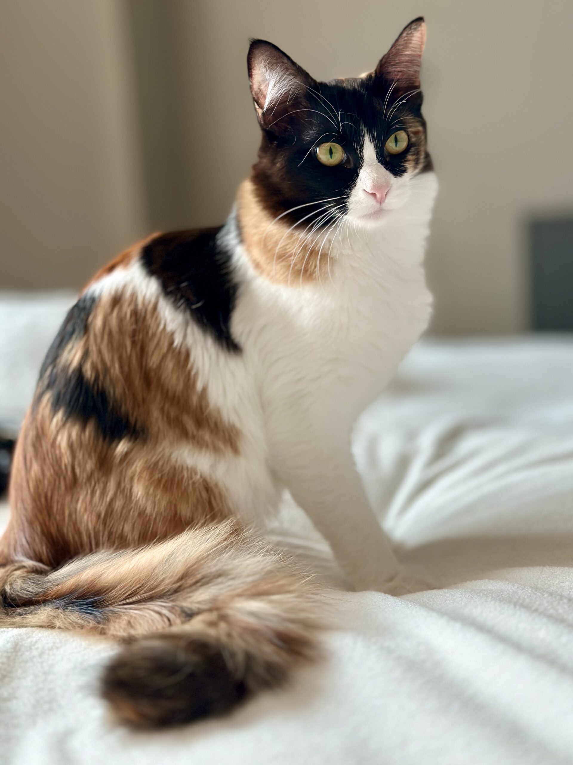 Found on Christmas Day 2024, Evee is the confident leader of a beautiful bonded pair with her brother, Snowy. Curious and observant, she loves to follow your every move from a cozy perch, eager to stay in the know. While she enjoys her independence, Evee has a soft spot for gentle affection and will happily accept your loving pets.